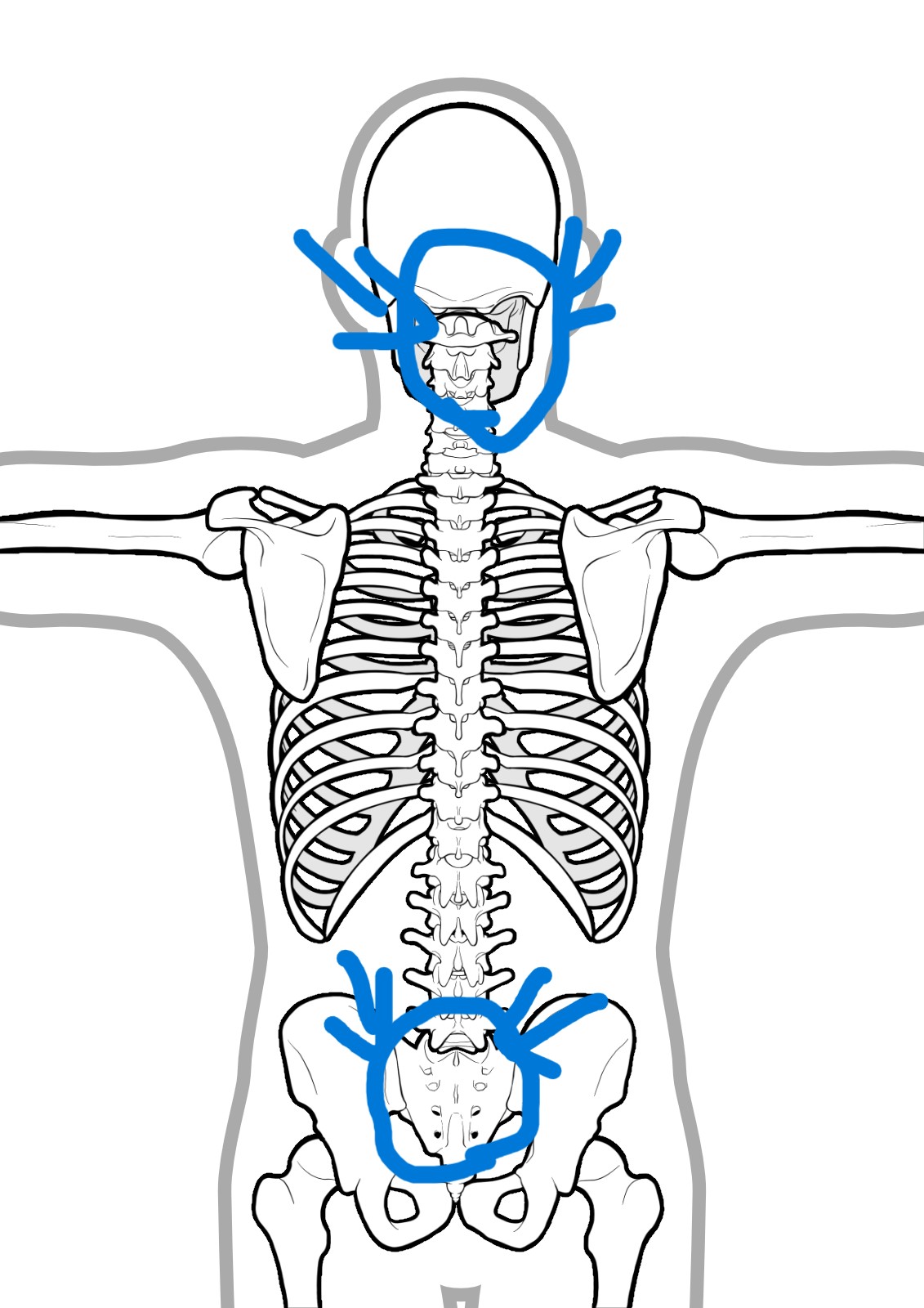 自律神経の乱れが強く不定愁訴がある人は、頭の後頭部やお尻の仙骨と呼ばれる骨の動きが固いことが多いです。
